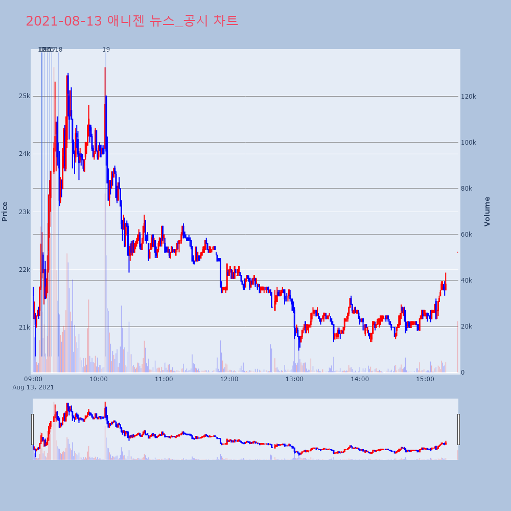 | 6 | 애니젠, 신약 개발 기업으로 재평가 소식에 14%대 급등펩타이드 원료의약품 생산 업체인 애니젠이 급등세다. | 한경/증권 | 애니젠 | 2021-08-12 09:50:29 |