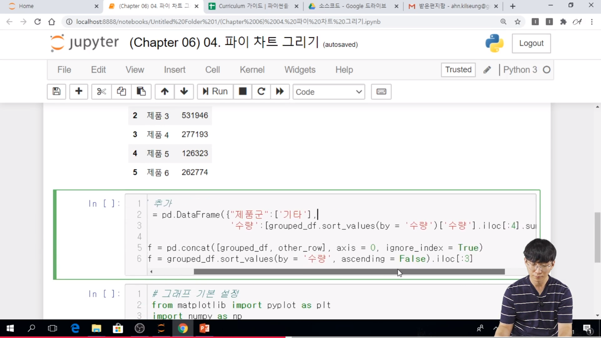 // iloc 4라는 것은 4등까지만 해서 합을 내는 것이다. consum 등을 이용해서 그리는 것도 고려해 볼 수 있다. 기타로 두는 것은 여러 방법이 있다.