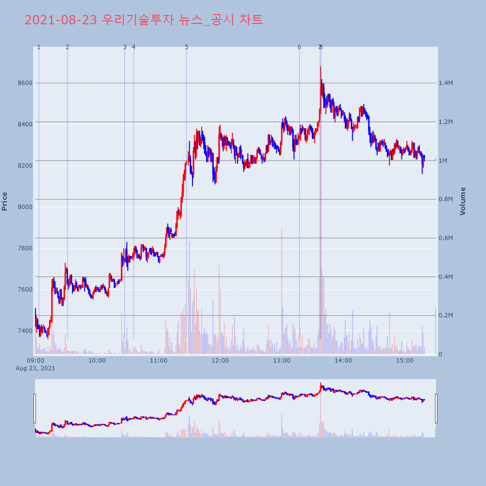 | 5 | 우리기술투자, +14.48% VI 발동우리기술투자(041190)가 VI가 발동했다. 전일 대 | 조선경제 | 우리기술투자 | 2021-08-23 11:27:08 |