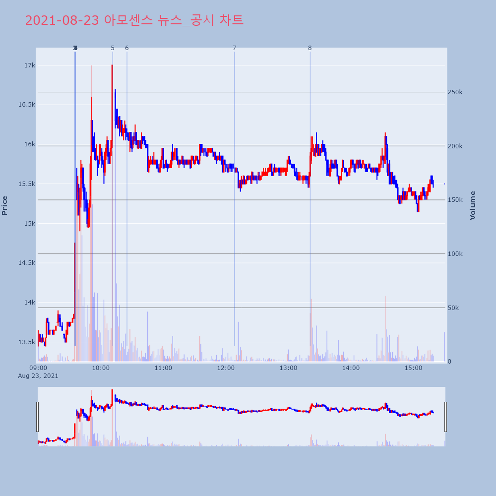 | 7 | [강세 토픽] 무선충전 테마, 아모센스 +17.16%, 포스코 ICT +3.82%[무선충전] 테마가 강세다. 전일 대비 2.79% 상승 | 조선경제 | 아모센스 | 2021-08-23 12:08:20 |