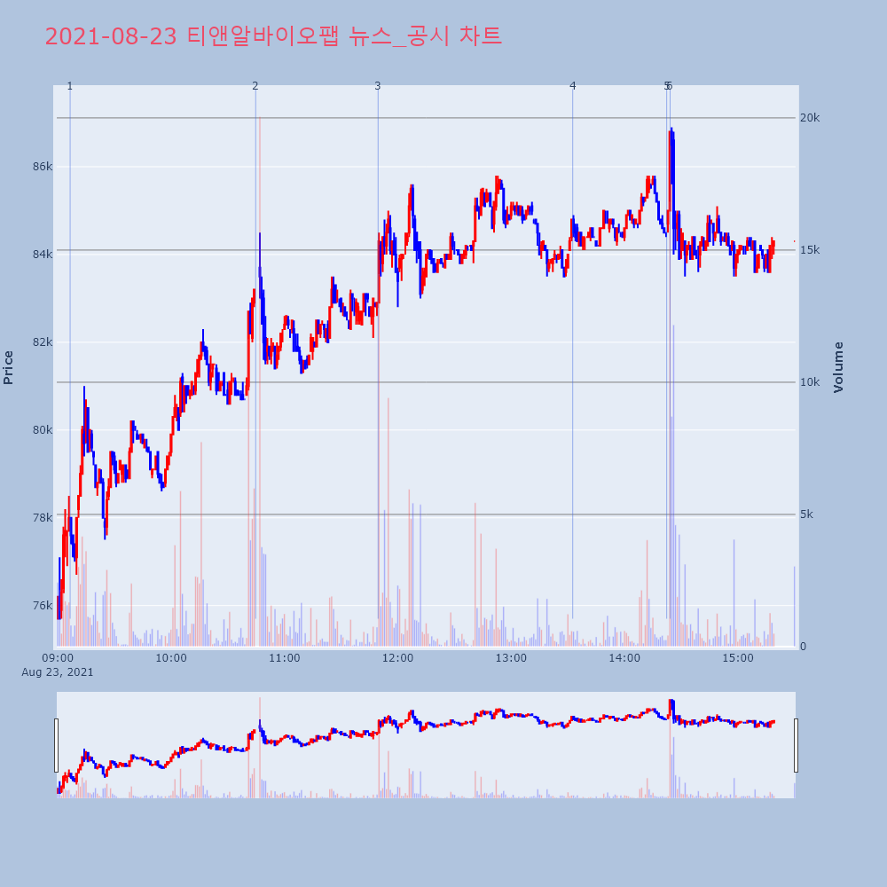 | 2 | 티앤알바이오팹, +9.93% VI 발동티앤알바이오팹(246710)이 VI가 발동했다. 전일 | 조선경제 | 티앤알바이오팹 | 2021-08-23 10:44:47 |