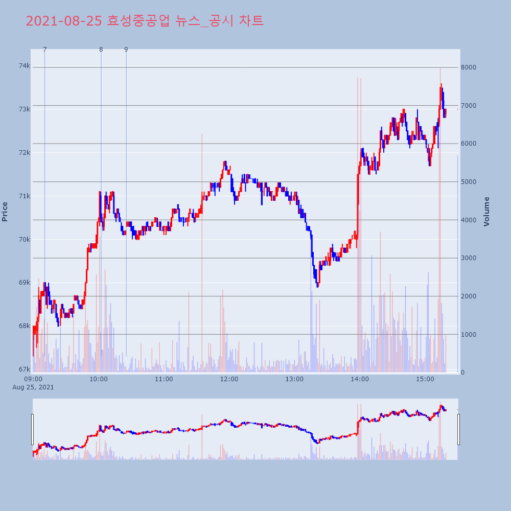 | 8 | [강세 토픽] 수소전기차 - 인프라 테마, 효성화학 +7.60%, 효성중공업 +6.7[수소전기차 - 인프라] 테마가 강세다. 전일 대비 2 | 조선경제 | 효성화학 | 2021-08-25 10:02:24 |