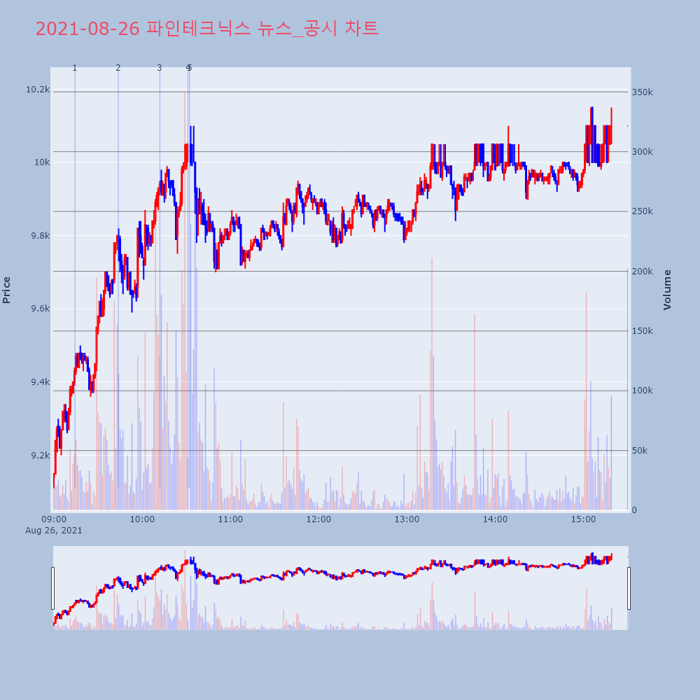 | 4 | 파인테크닉스, +9.84% VI 발동파인테크닉스(106240)가 VI가 발동했다. 전일 대 | 조선경제 | 파인테크닉스 | 2021-08-26 10:31:07 |