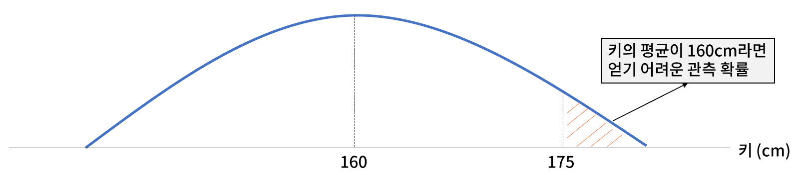 - 대립 가설 : 대한민국 성인 남성의 키는 160 cm 이상일 것이다.