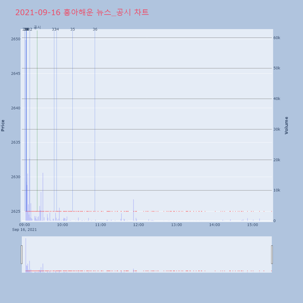 | 15 | [특징주] 흥아해운, 거래 재개 첫날 상승세 보여 제목 : [특징주] 흥아해운, 거래 재개 첫날 상승세 | 인포스탁 | 흥아해운 | 2021-09-15 10:34:37 |