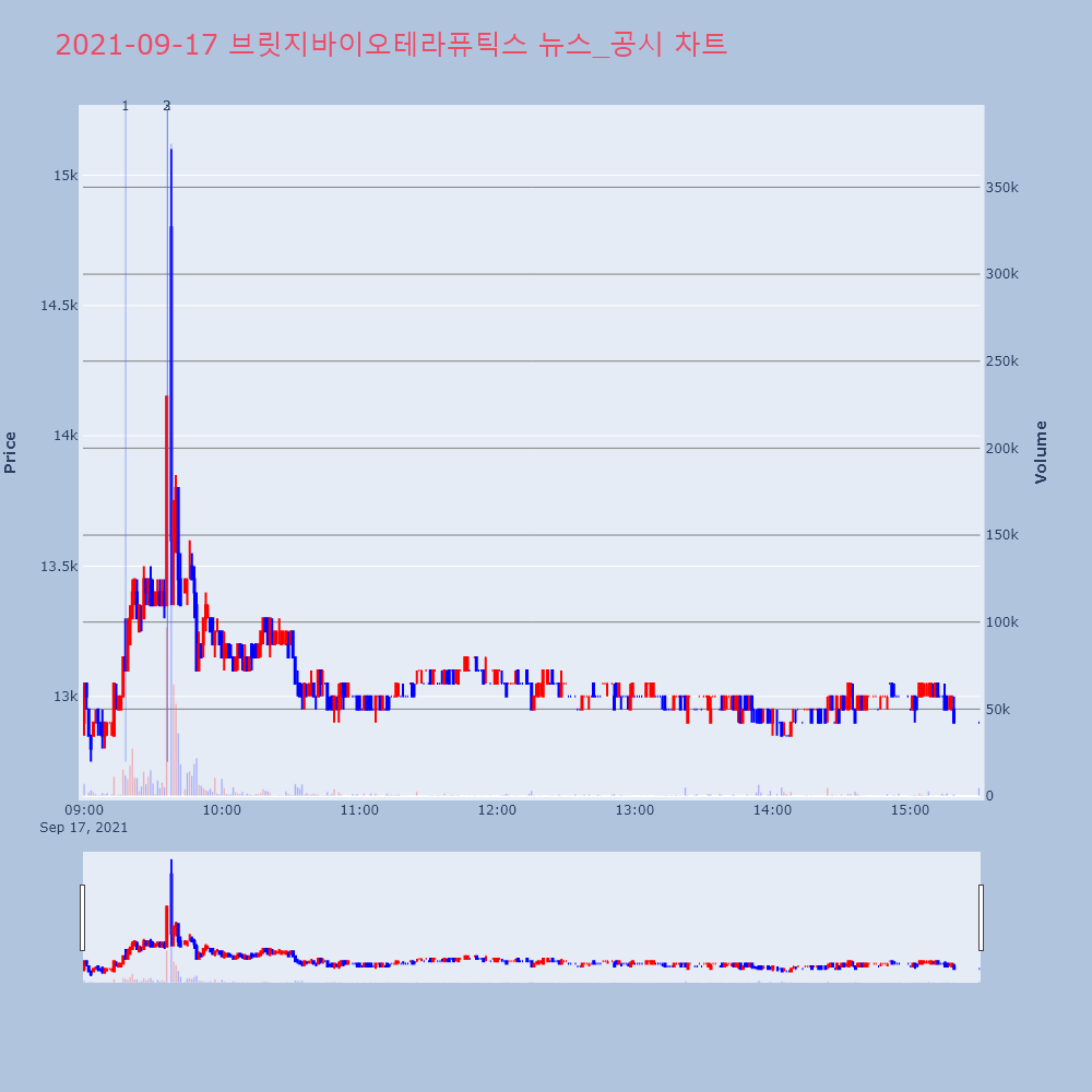 | 2 | 브릿지바이오테라퓨틱스, +12.30% VI 발동브릿지바이오테라퓨틱스(288330)가 VI가 발동했다. | 조선경제 | 브릿지바이오테라퓨틱스 | 2021-09-17 09:36:17 |