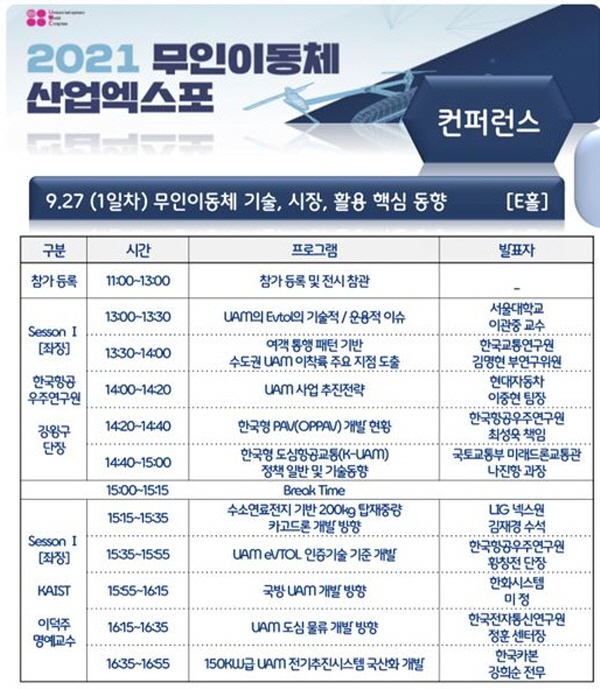 "- 2021 무인이동체산업엑스포가 9월26일부터 28일까지 3일간 서울 코엑스 전시장 D홀에서 개최될 예정.