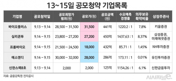 바이오플러스는 지난 8일과 9일 기관투자자를 대상으로 수요예측을 실시하고 공모가를 예정가 밴드(28,500원~31,500원) 상단인 31,500원으로 확정했다.