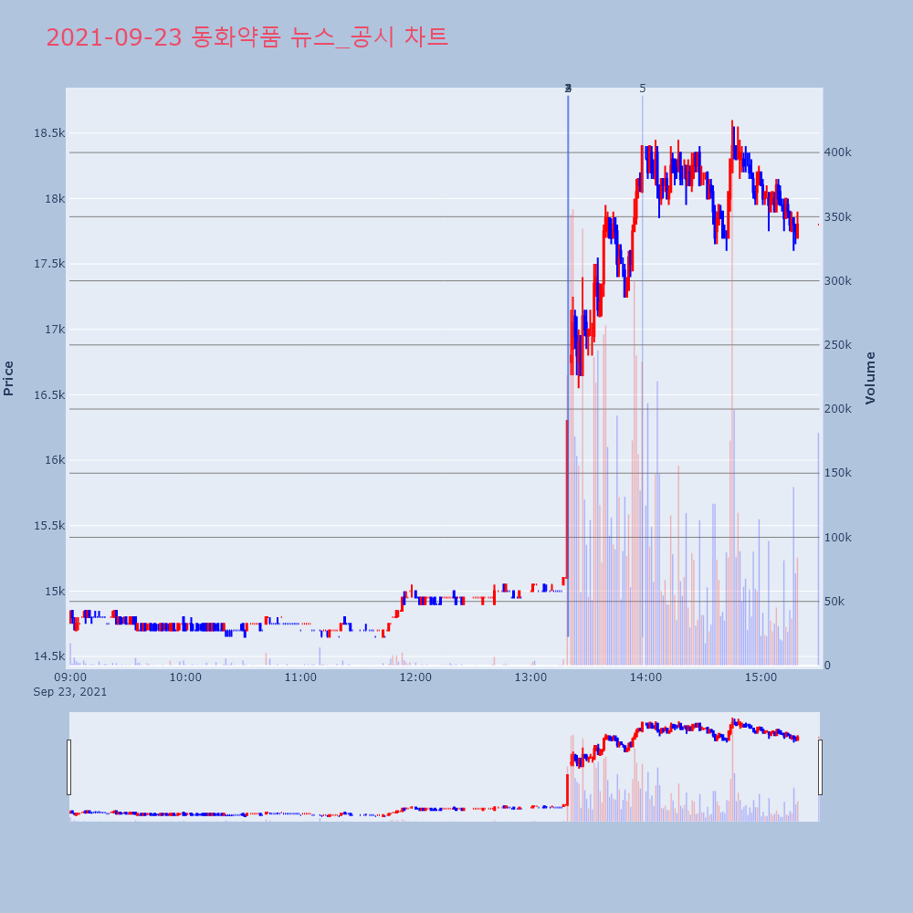 | 4 | 동화약품, +7.97% VI 발동동화약품(000020)이 VI가 발동했다. 전일 대비 | 조선경제 | 동화약품 | 2021-09-23 13:19:45 |