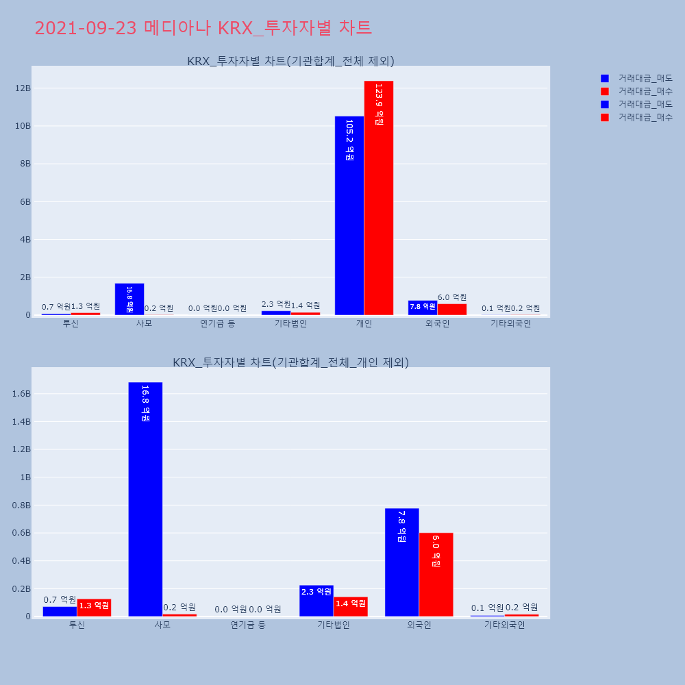 | 투자기관 | 거래량_매도 | 거래량_매수 | 거래량_순매수 | 거래대금_매도 | 거래대금_매수 | 거래대금_순매수 |
