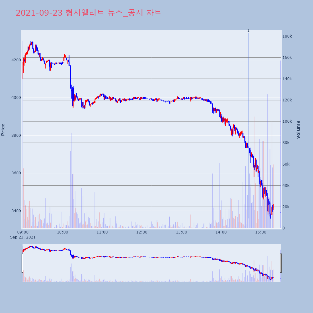 | 1 | 형지엘리트, -17.64% VI 발동형지엘리트(093240)가 VI가 발동했다. 전일 대비 | 조선경제 | 형지엘리트 | 2021-09-23 14:41:19 |
