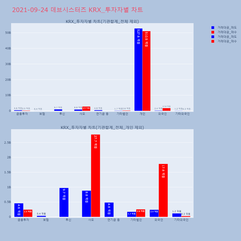 | 투자기관 | 거래량_매도 | 거래량_매수 | 거래량_순매수 | 거래대금_매도 | 거래대금_매수 | 거래대금_순매수 |