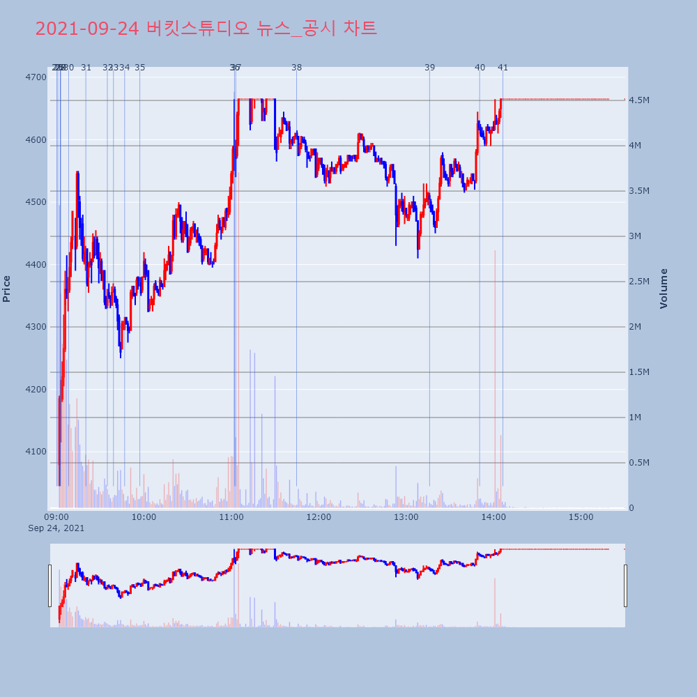 | 25 | 버킷스튜디오, 0.00% VI 발동버킷스튜디오(066410)가 VI가 발동했다. 현재 3 | 조선경제 | 버킷스튜디오 | 2021-09-24 09:00:14 |