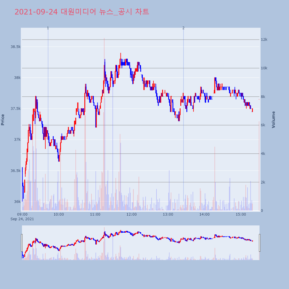 | 2 | [특징주] "대원미디어, '아머드 사우르스' 해외 OTT 확장 가능성"...강세 [서울=뉴스핌] 김양섭 기자 = 대원미디어가 자체 IP | 뉴스핌 | 대원미디어 | 2021-09-24 13:25:30 |