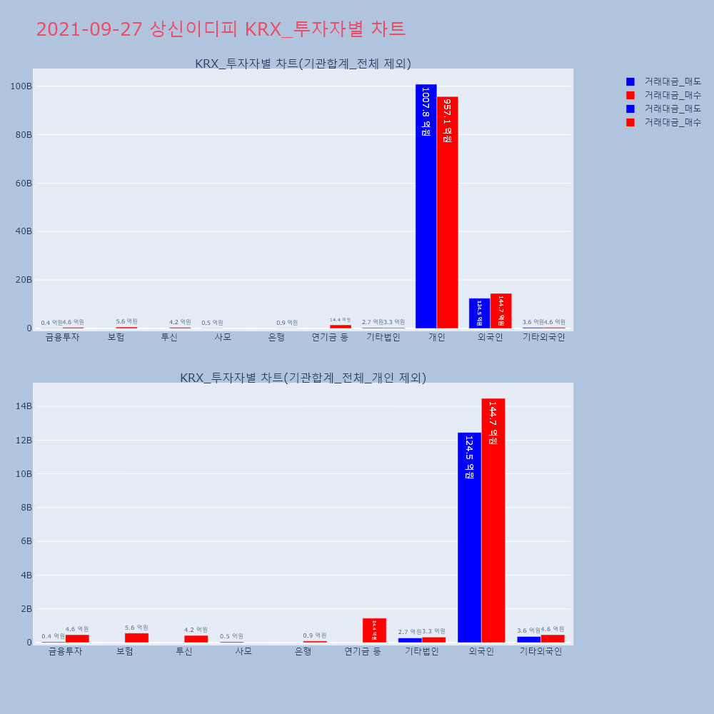 | 투자기관 | 거래량_매도 | 거래량_매수 | 거래량_순매수 | 거래대금_매도 | 거래대금_매수 | 거래대금_순매수 |