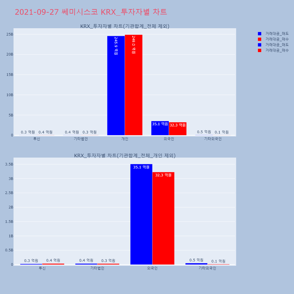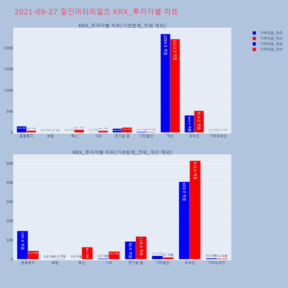 | 투자기관 | 거래량_매도 | 거래량_매수 | 거래량_순매수 | 거래대금_매도 | 거래대금_매수 | 거래대금_순매수 |