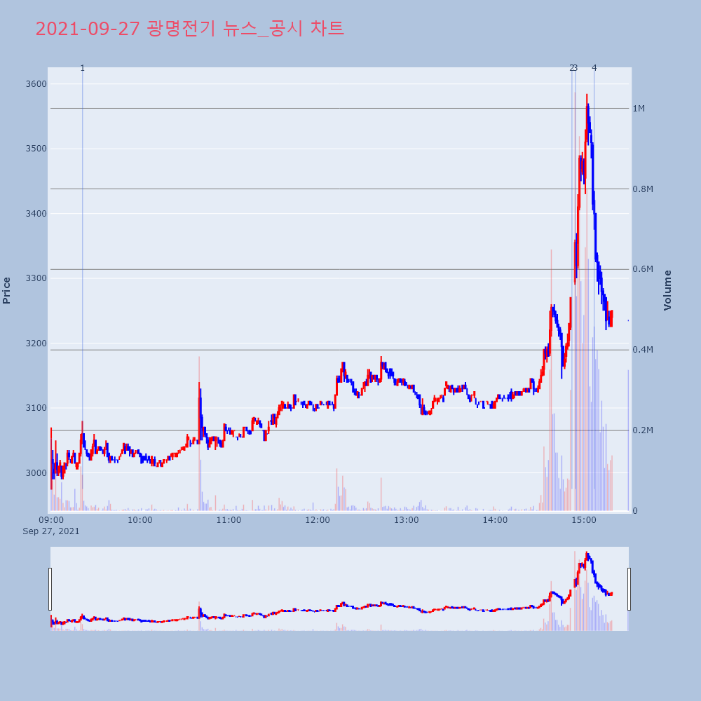 | 3 | 광명전기, +15.22% 상승폭 확대광명전기(017040)가 상승폭을 확대하고 있다. 전일 | 조선경제 | 광명전기 | 2021-09-27 14:54:21 |