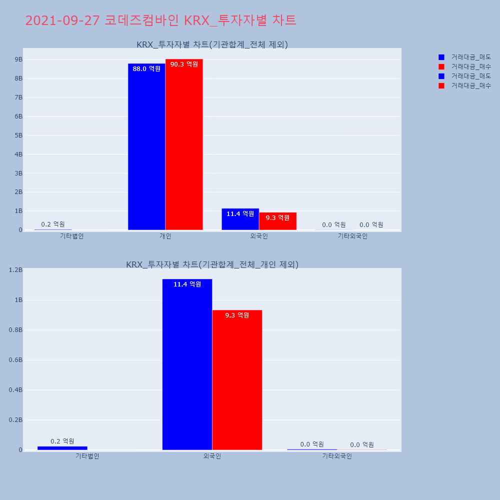 | 투자기관 | 거래량_매도 | 거래량_매수 | 거래량_순매수 | 거래대금_매도 | 거래대금_매수 | 거래대금_순매수 |