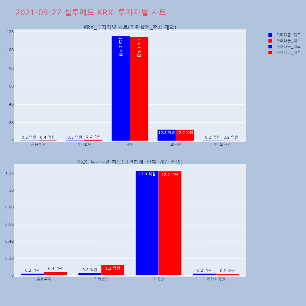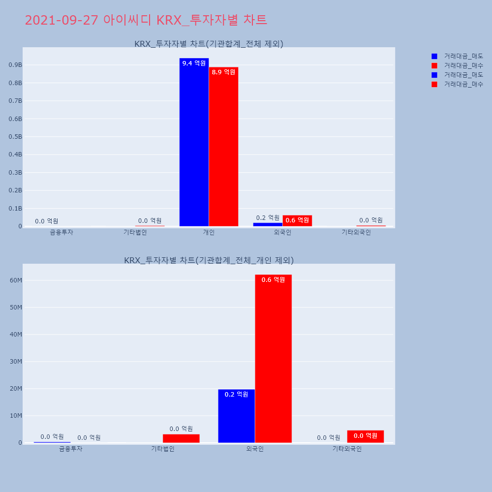 | 투자기관 | 거래량_매도 | 거래량_매수 | 거래량_순매수 | 거래대금_매도 | 거래대금_매수 | 거래대금_순매수 |