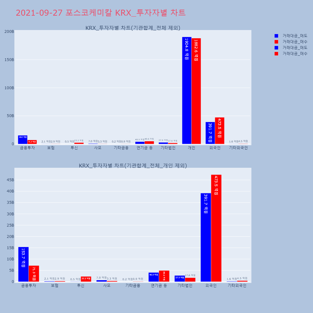 | 투자기관 | 거래량_매도 | 거래량_매수 | 거래량_순매수 | 거래대금_매도 | 거래대금_매수 | 거래대금_순매수 |
