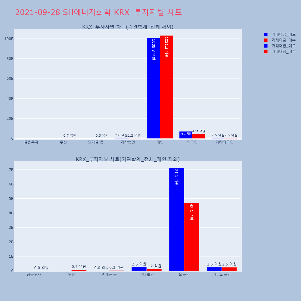 | 투자기관 | 거래량_매도 | 거래량_매수 | 거래량_순매수 | 거래대금_매도 | 거래대금_매수 | 거래대금_순매수 |
