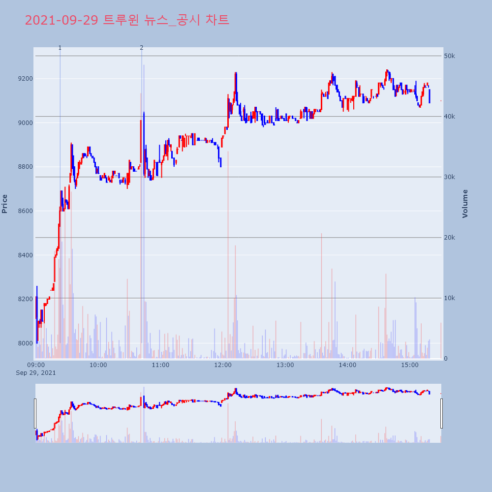 | 2 | 트루윈, +7.90% VI 발동트루윈(105550)이 VI가 발동했다. 전일 대비 7 | 조선경제 | 트루윈 | 2021-09-29 10:41:52 |