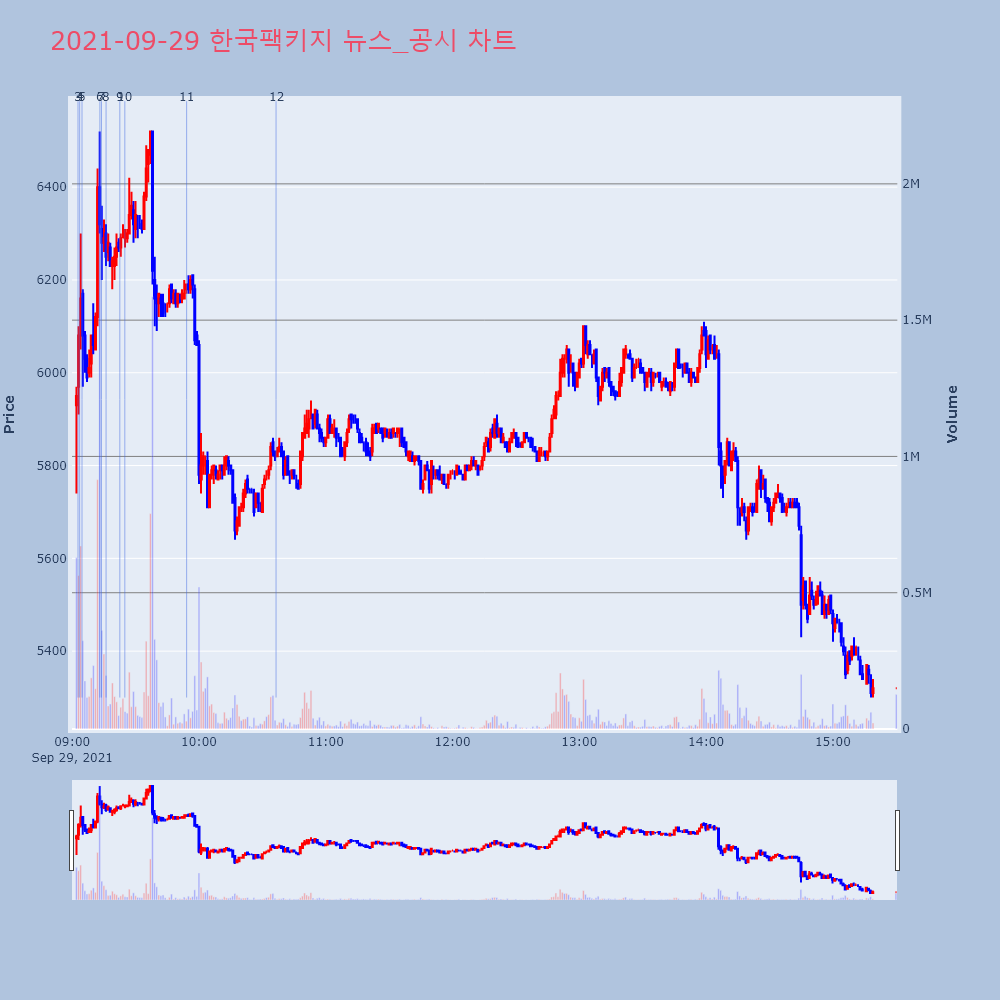 | 11 | [장초반 인기 검색 종목 PICK5] - 에코캡, 해성티피씨, 한국팩키지... 최적의 매매타이밍을 실시간으로 전송하여 투자자들에게 도 | 파이낸셜 | 한국팩키지 | 2021-09-29 09:54:09 |
