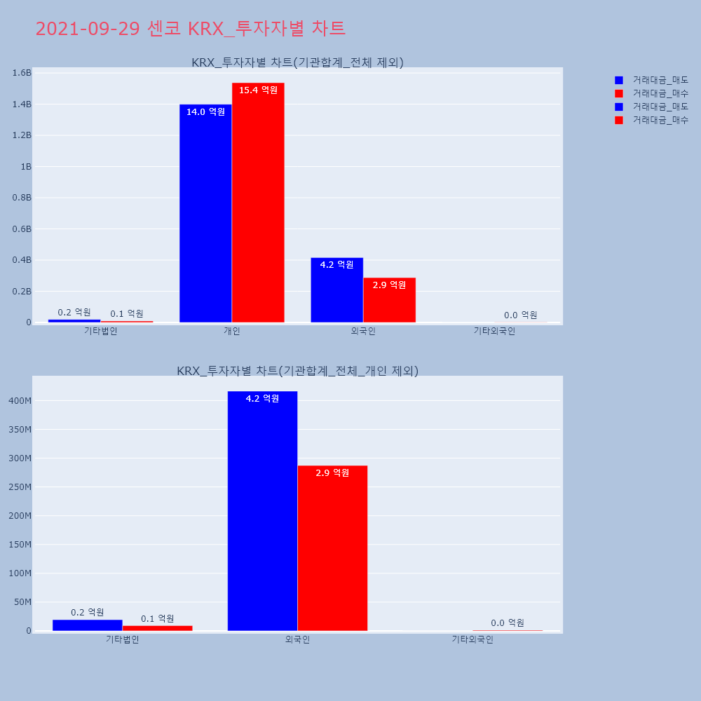 | 투자기관 | 거래량_매도 | 거래량_매수 | 거래량_순매수 | 거래대금_매도 | 거래대금_매수 | 거래대금_순매수 |