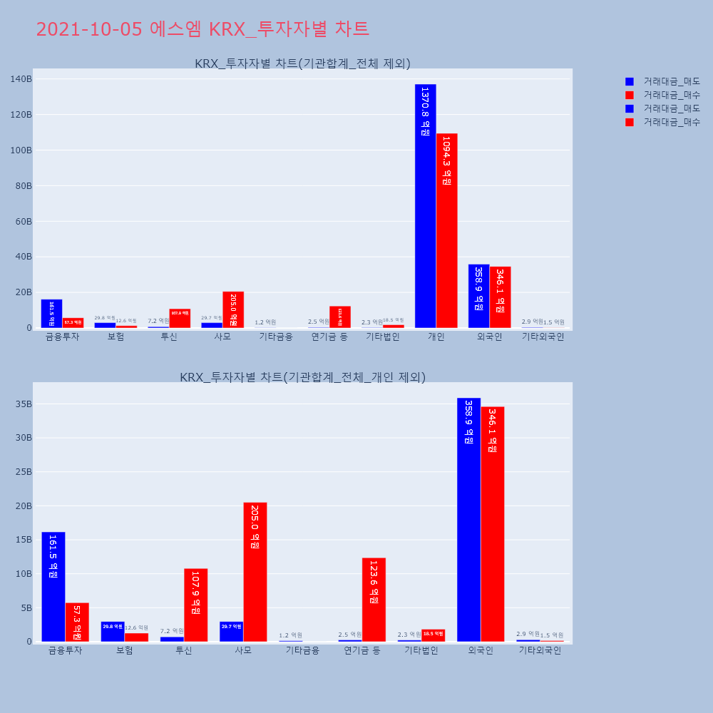 | 투자기관 | 거래량_매도 | 거래량_매수 | 거래량_순매수 | 거래대금_매도 | 거래대금_매수 | 거래대금_순매수 |