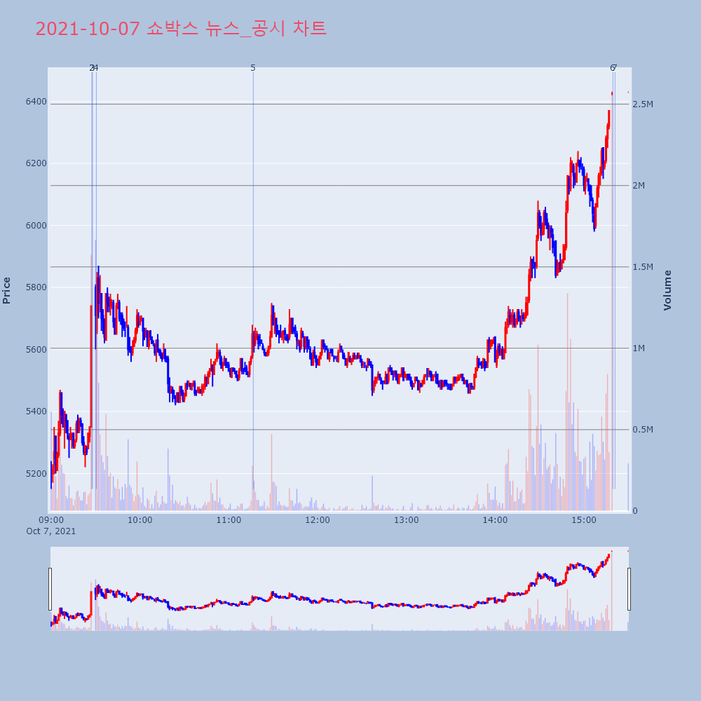 | 7 | [이시각 상한가] 쇼박스(▲1480) - 7일 오후 15시19분[이투데이/e2BOT 기자(e2bot@etoday.co | 이투데이 | 쇼박스 | 2021-10-07 15:21:03 |