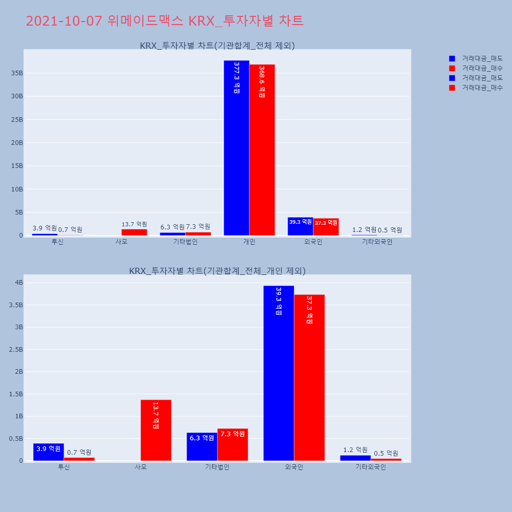 | 투자기관 | 거래량_매도 | 거래량_매수 | 거래량_순매수 | 거래대금_매도 | 거래대금_매수 | 거래대금_순매수 |