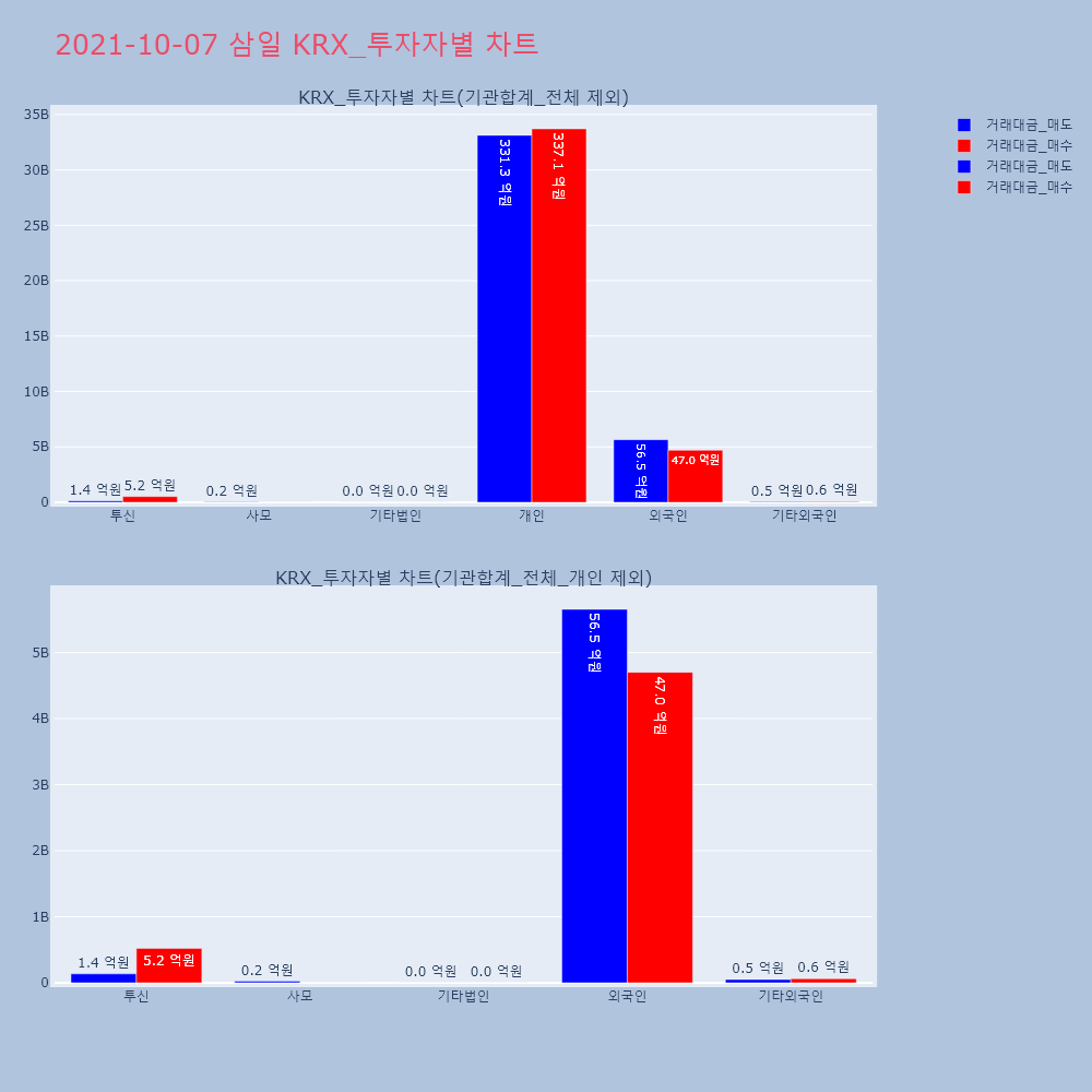 | 투자기관 | 거래량_매도 | 거래량_매수 | 거래량_순매수 | 거래대금_매도 | 거래대금_매수 | 거래대금_순매수 |