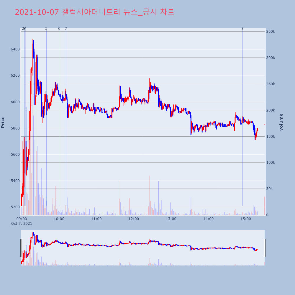| 3 | 갤럭시아머니트리, +10.19% VI 발동갤럭시아머니트리(094480)가 VI가 발동했다. 전일 | 조선경제 | 갤럭시아머니트리 | 2021-10-07 09:04:43 |
