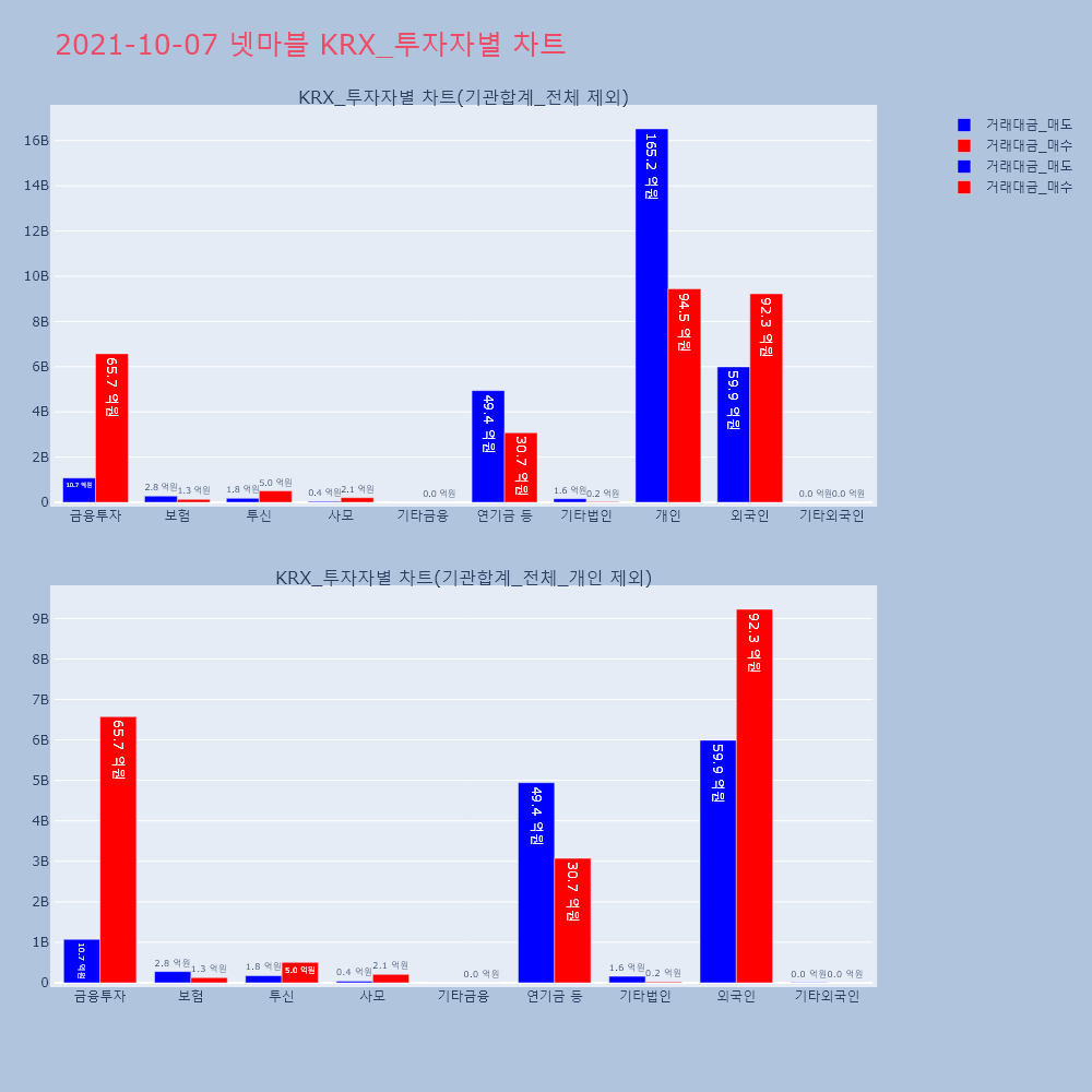 | 투자기관 | 거래량_매도 | 거래량_매수 | 거래량_순매수 | 거래대금_매도 | 거래대금_매수 | 거래대금_순매수 |