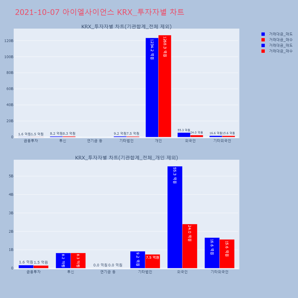 | 14 | 아이엘사이언스, 0.00% VI 발동아이엘사이언스(307180)가 VI가 발동했다. 현재 | 조선경제 | 아이엘사이언스 | 2021-10-07 09:00:14 |
