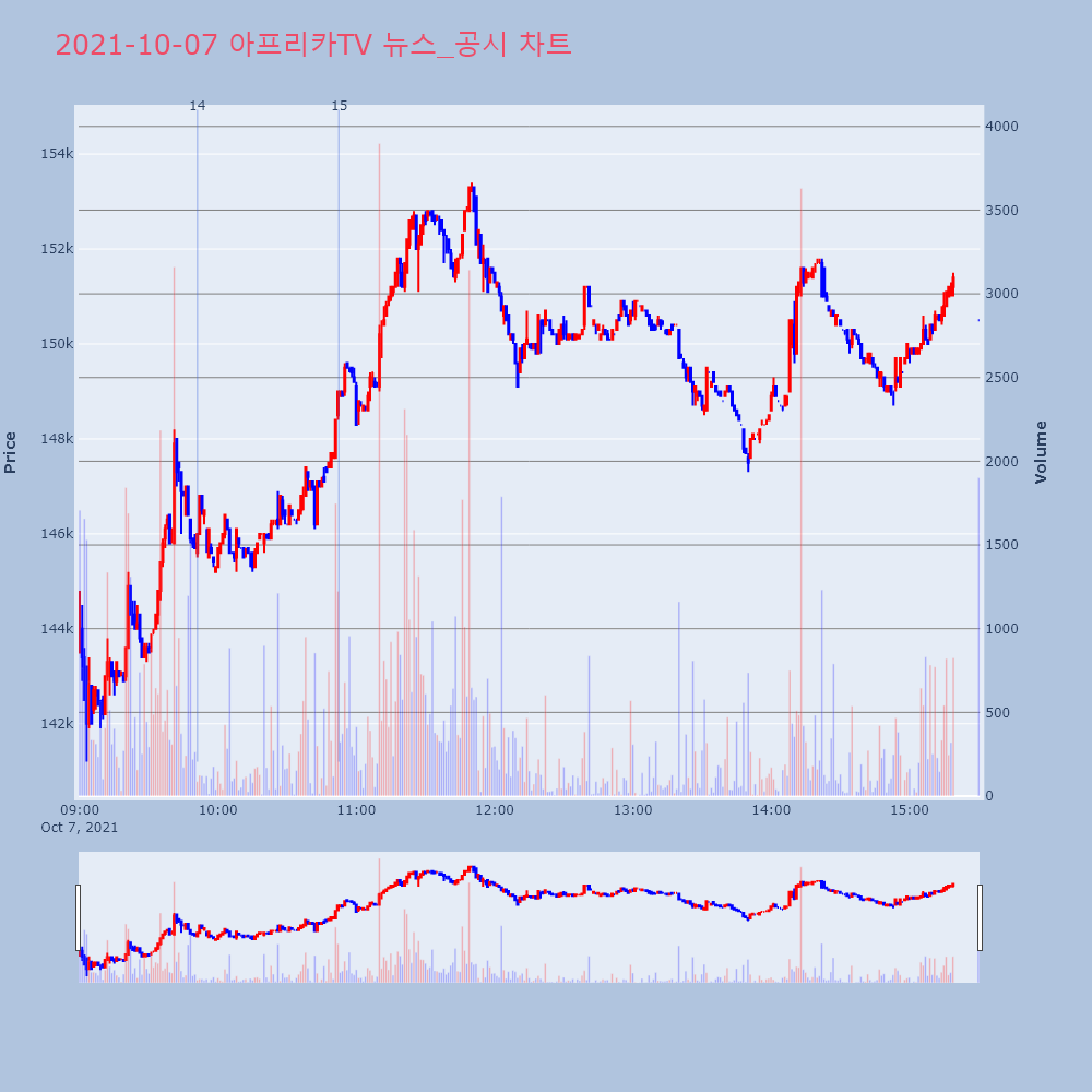 | 14 | [특징주]아프리카TV, 광고 매출 증가 기대에 ‘강세’▶ 하이스탁론, 선취수수료 없는 월 0.2%대 최저금리 | 이데일리 | 아프리카TV | 2021-10-07 09:51:04 |