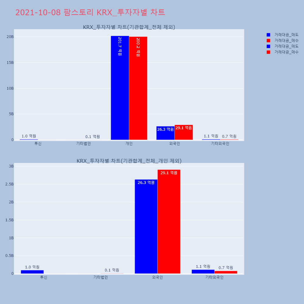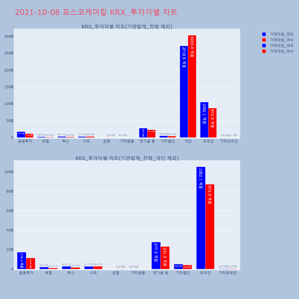 | 투자기관 | 거래량_매도 | 거래량_매수 | 거래량_순매수 | 거래대금_매도 | 거래대금_매수 | 거래대금_순매수 |