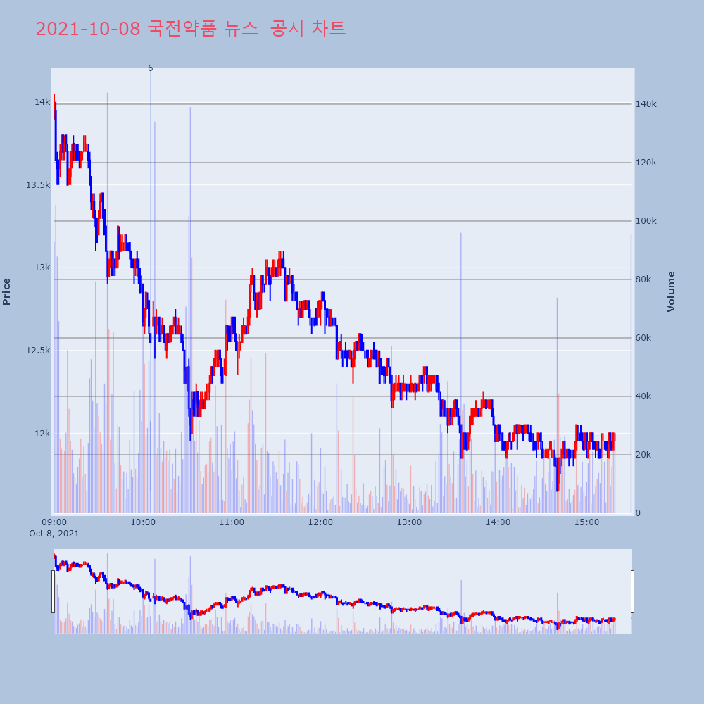 | 6 | 국전약품, -11.93% VI 발동국전약품(307750)이 VI가 발동했다. 전일 대비 | 조선경제 | 국전약품 | 2021-10-08 10:05:12 |