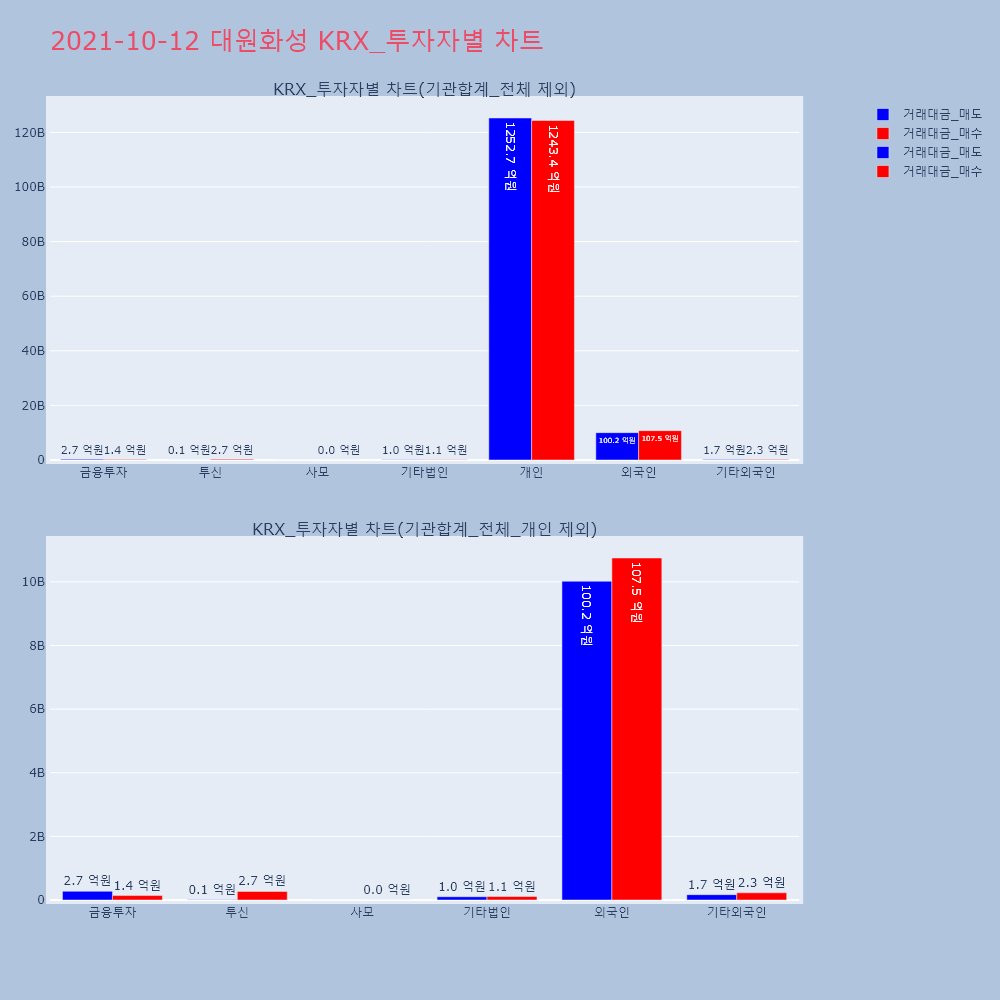 | 투자기관 | 거래량_매도 | 거래량_매수 | 거래량_순매수 | 거래대금_매도 | 거래대금_매수 | 거래대금_순매수 |