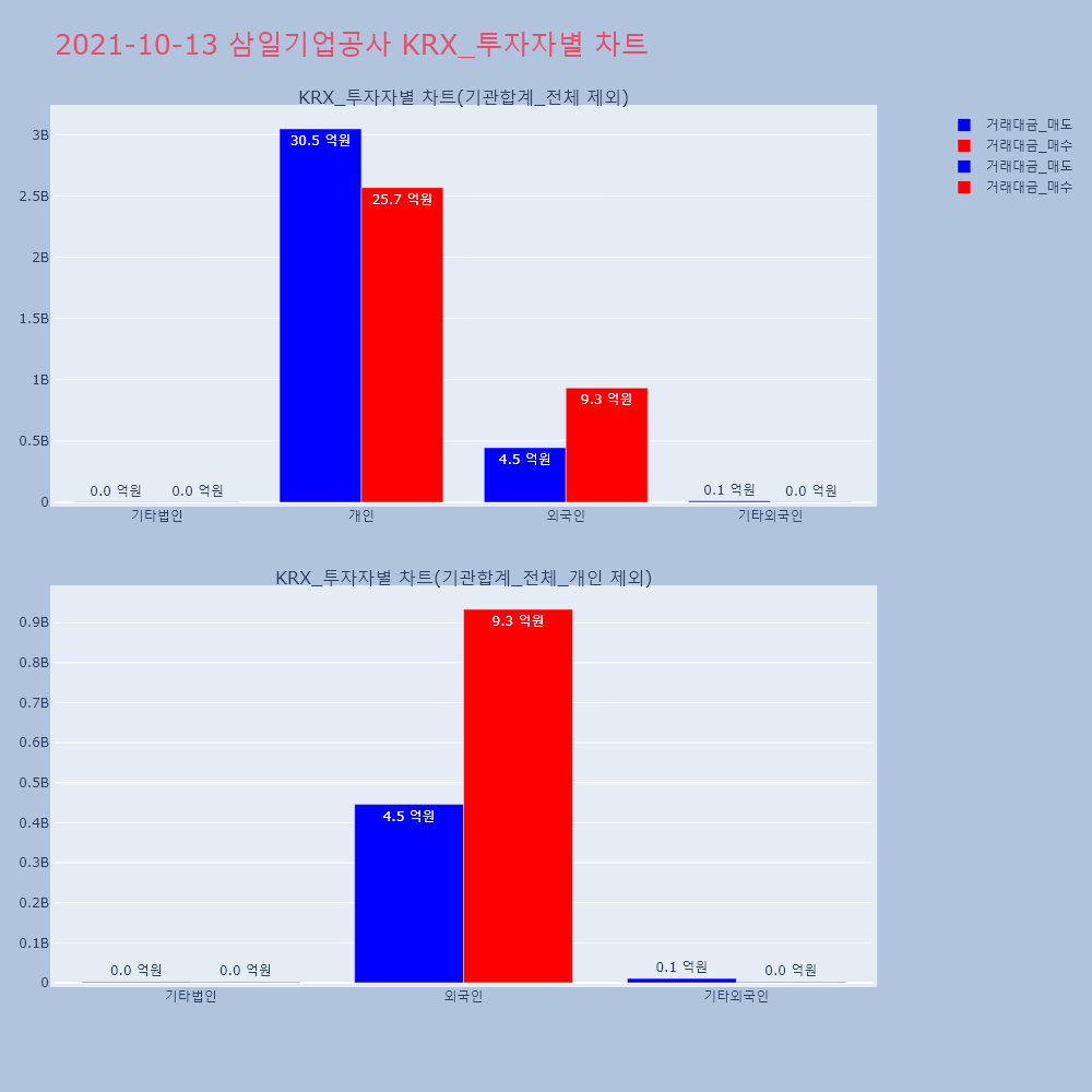 | 투자기관 | 거래량_매도 | 거래량_매수 | 거래량_순매수 | 거래대금_매도 | 거래대금_매수 | 거래대금_순매수 |