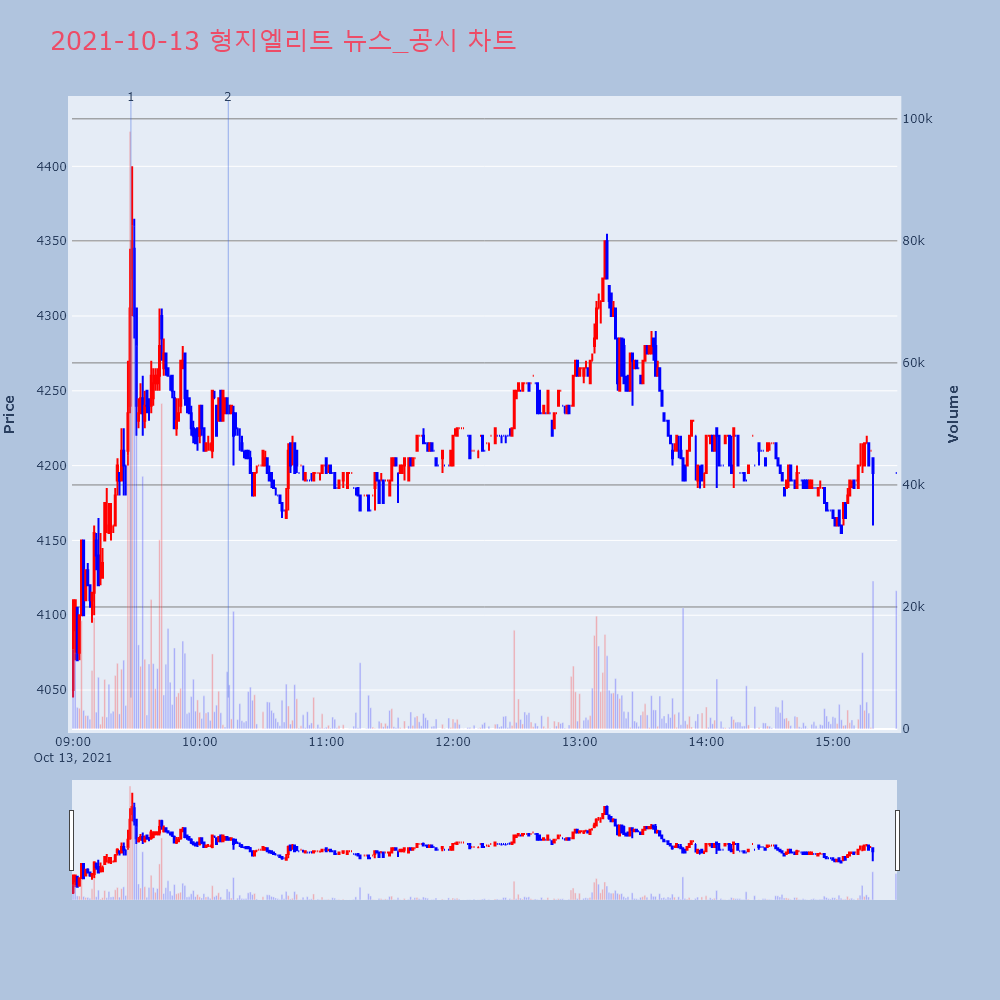 | 2 | [강세 토픽] 의류 브랜드 테마, 형지엘리트 +4.57%, 더네이쳐홀딩스 +4.34%[의류 브랜드] 테마가 강세다. 전일 대비 1.95% | 조선경제 | 형지엘리트 | 2021-10-13 10:13:32 |