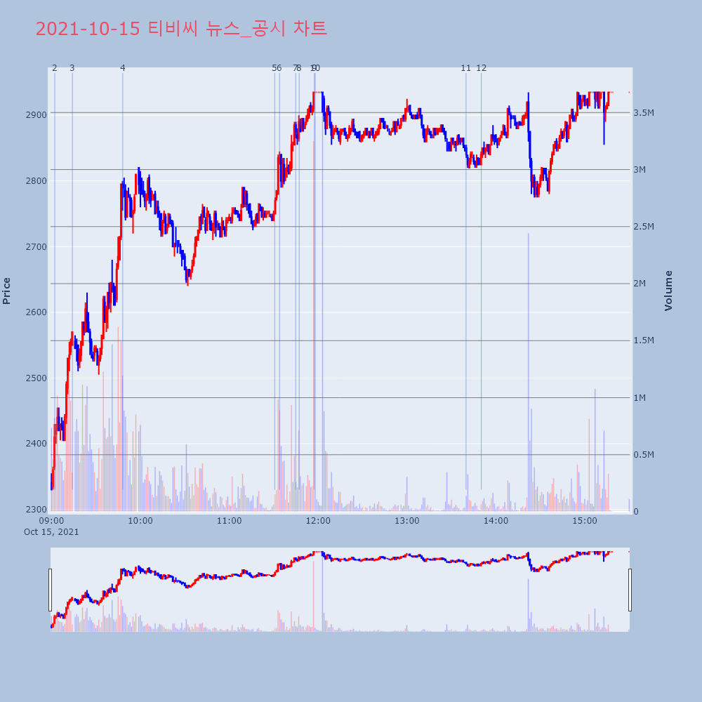 | 3 | 티비씨, +13.72% VI 발동티비씨(033830)가 VI가 발동했다. 전일 대비 1 | 조선경제 | 티비씨 | 2021-10-15 09:14:09 |