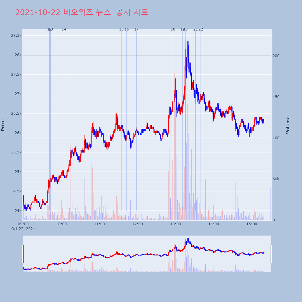| 19 | [강세 토픽] 크래프톤 관련주 테마, 네오위즈 +8.51%, 카카오게임즈 +6.63%[크래프톤 관련주] 테마가 강세다. 전일 대비 2.34 | 조선경제 | 네오위즈 | 2021-10-22 11:34:33 |