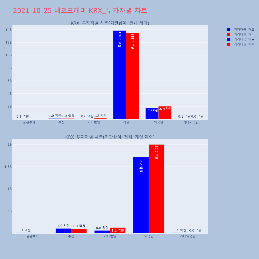 | 투자기관 | 거래량_매도 | 거래량_매수 | 거래량_순매수 | 거래대금_매도 | 거래대금_매수 | 거래대금_순매수 |