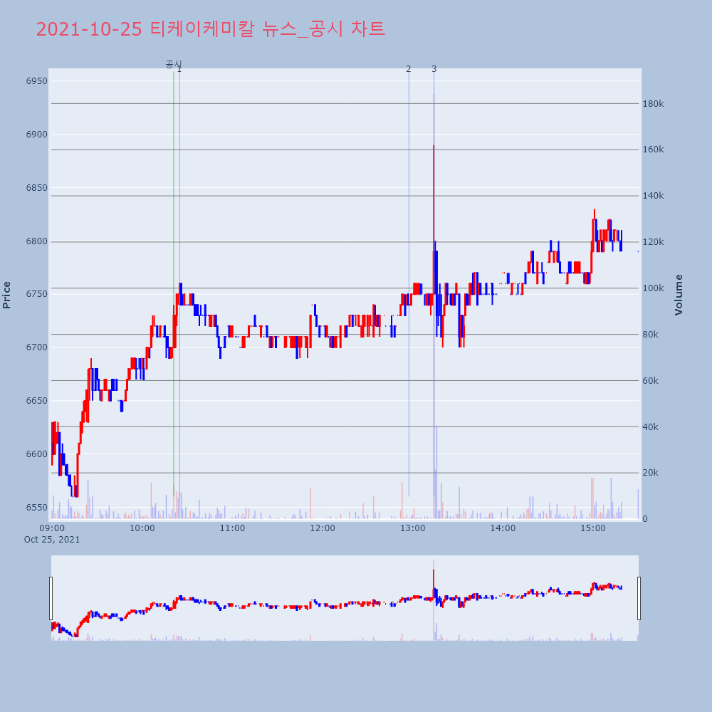 | 2 | 티케이케미칼, 32억 가창 배수지 설치 공사 계약티케이케미칼, 32억 가창 배수지 설치 공사 계약[아이 | 아이투자 | 티케이케미칼 | 2021-10-25 12:57:31 |