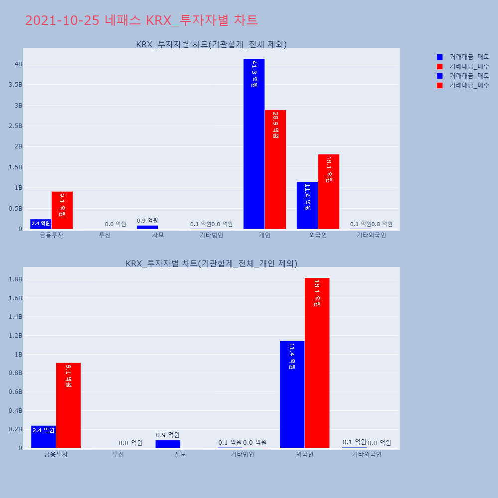| 투자기관 | 거래량_매도 | 거래량_매수 | 거래량_순매수 | 거래대금_매도 | 거래대금_매수 | 거래대금_순매수 |