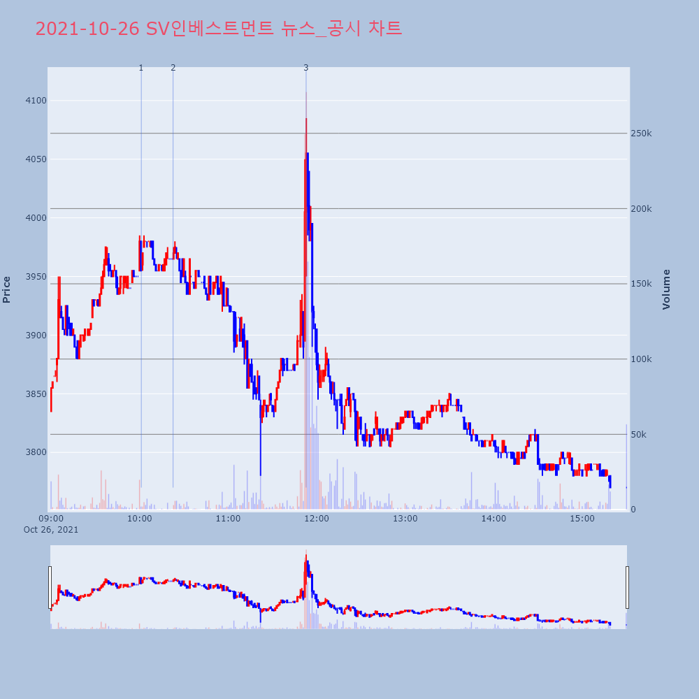| 2 | [장중수급포착] SV인베스트먼트, 외국인 5일 연속 순매수행진... 주가 +2.4[서울=뉴스핌] 로보뉴스 = 26일 10시 15분 현재 | 뉴스핌 | SV인베스트먼트 | 2021-10-26 10:22:43 |