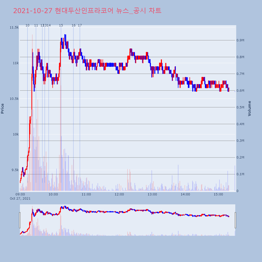 | 11 | [특징주] 현대두산인프라코어, 중남미서 건설장비 138대 수주… 13%↑ 제목 : [특징주] 현대두산인프라코어, 중남미서 건설장 | 인포스탁 | 현대두산인프라코어 | 2021-10-27 09:28:39 |