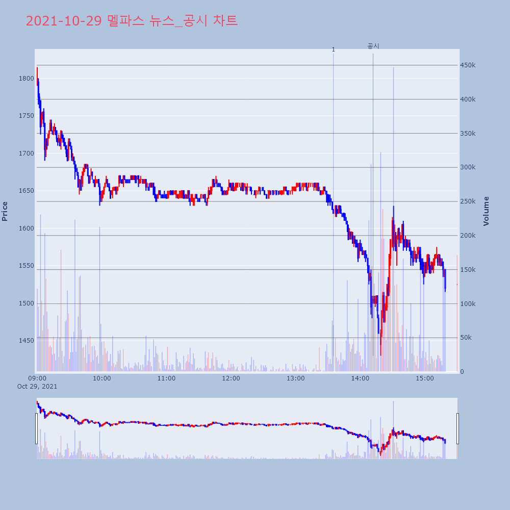 | 1 | 멜파스, -10.99% VI 발동멜파스(096640)가 VI가 발동했다. 전일 대비 1 | 조선경제 | 멜파스 | 2021-10-29 13:35:07 |