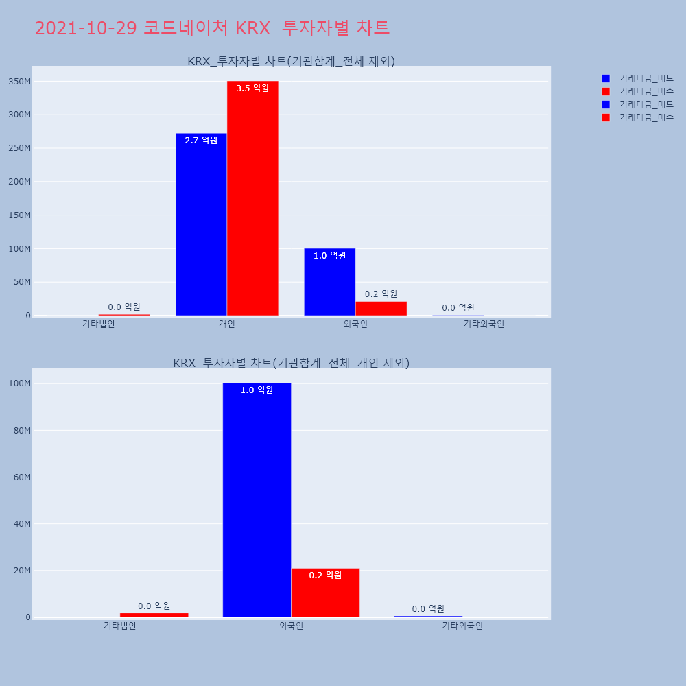 | 투자기관 | 거래량_매도 | 거래량_매수 | 거래량_순매수 | 거래대금_매도 | 거래대금_매수 | 거래대금_순매수 |